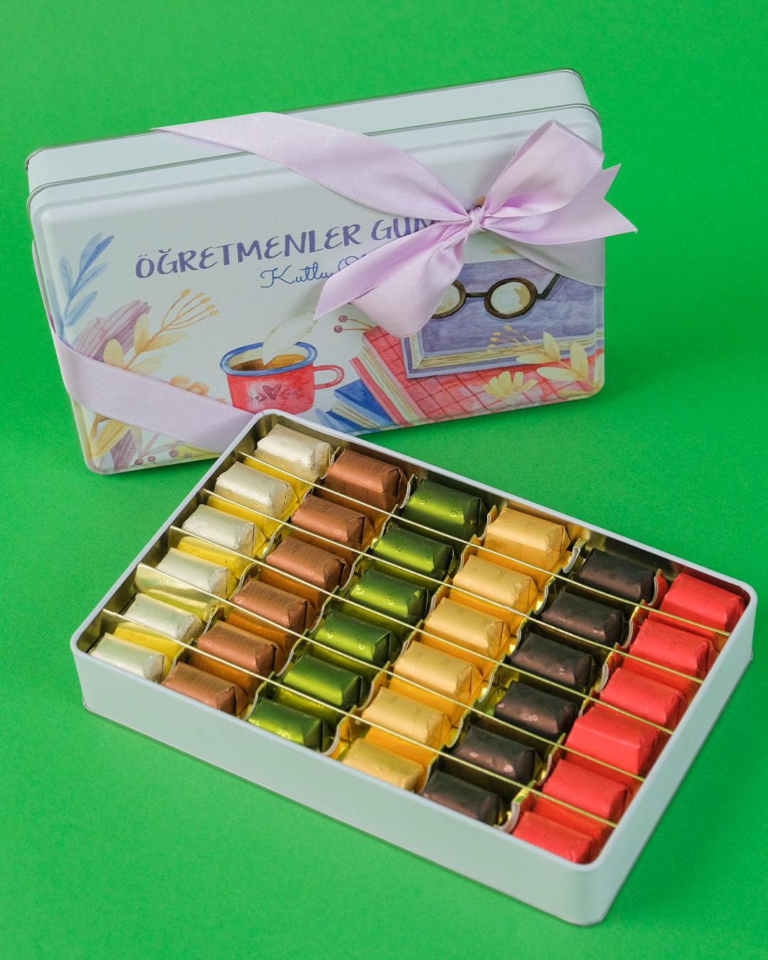 Dolgulu Çikolata Diktörtgen Metal Kutu Öğretmenler Günü Hediyesi (OGR-327)
